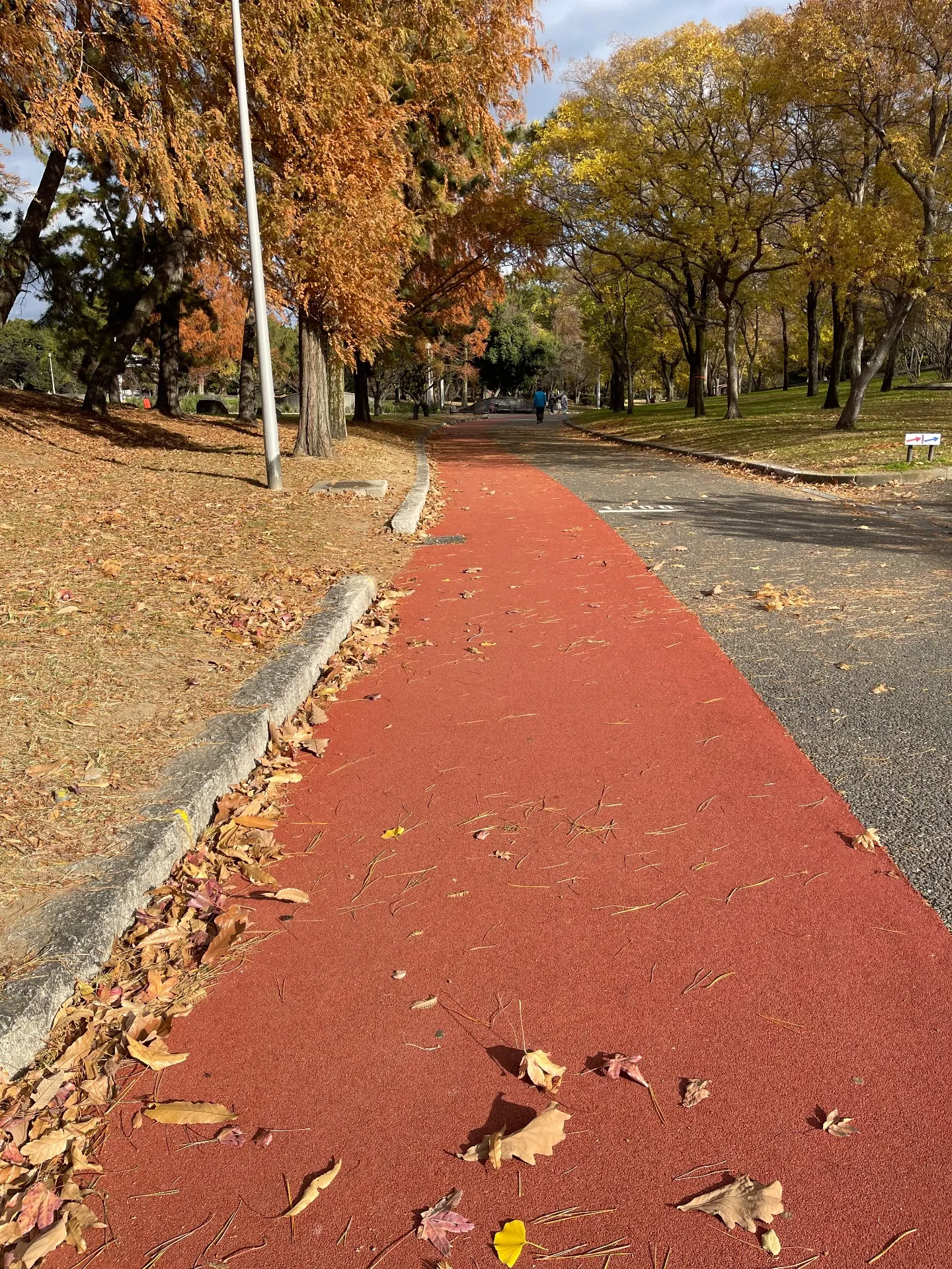 今年の夏前に大阪久宝寺公園ジョギング走路の回収工事をさせていただきました。昨日、公園を訪ねてみましたが落ち葉が舞い、管理の行き届いた公園を子供達が元気に走り回り、ジョギング走路をゆっくり歩いたり体をほぐしながら走っていたり様々な人が楽しんでいました。新しくカフェも作られ、バーベキュースペースもあり近隣の方の貴重な空間がありました。この空間に携わる事がとても楽しみで誇らしく思いました。